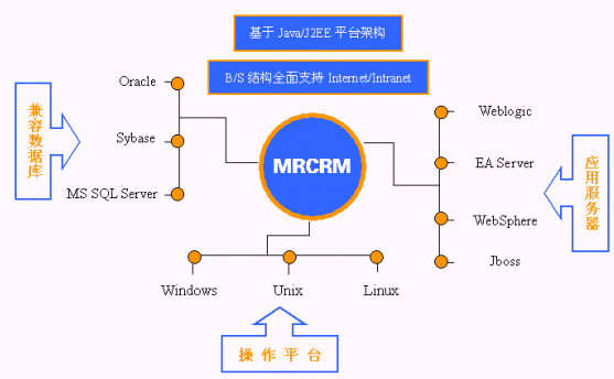 從技術(shù)角度講:MRCRM采用先進(jìn)的Java/J2EE平臺架構(gòu),具有良好的開放性、移植性和可擴(kuò)展性。采用獨有的XBridge框架,通過XML文檔完成數(shù)據(jù)交換;業(yè)務(wù)層與數(shù)據(jù)層、表現(xiàn)層分離,業(yè)務(wù)邏輯封裝在EJB中。其技術(shù)特點主要為: