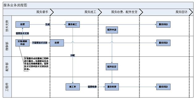 維修的流程通過電話受理,紙張記錄,傳真分配等過程,導致信息流轉丟失、誤傳等一系列漏洞,可是在出現(xiàn)狀況時,卻無法明確責任。