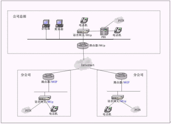 1) 在每個(gè)分公司安裝集成88IP的路由器,再通過(guò)路由器做端口映射到VOIP設(shè)備上。
