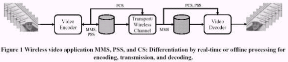 雖然新的服務(wù)如多媒體廣播/組播服務(wù)(MBMS)是未來無線網(wǎng)絡(luò)的發(fā)展計劃,但我們被約束成單一的應(yīng)用程序接受者。移動手持設(shè)備受處理器速度和存儲容量的限制,因此,移動視頻編碼的設(shè)計必須以最低復(fù)雜度和最高效率為目標(biāo)。正如其它文章所討論的復(fù)雜問題一樣,我們將自己約束在傳輸和工具上。以上三點(diǎn)定義的應(yīng)用可以在預(yù)定的的傳輸帶寬里面,最大限度地允許端到端的時延,在不同的系統(tǒng)結(jié)構(gòu)有不同的結(jié)果,一個簡單的圖示如圖一。