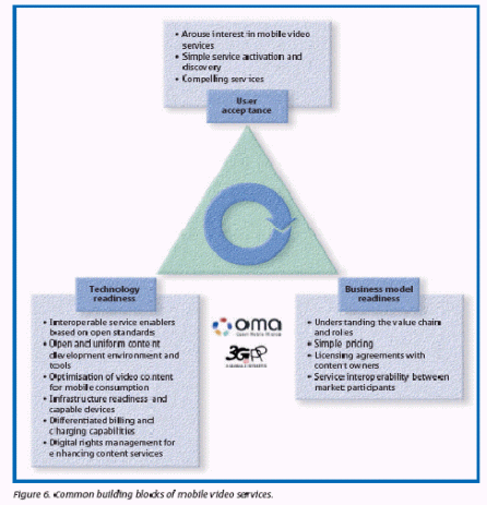 移動視頻服務(wù)會成為其它已制定的多媒體應(yīng)用程序的一個(gè)補(bǔ)充。例如,電視并未因網(wǎng)絡(luò)的出現(xiàn)而消逝,同樣的,其它數(shù)字化或傳統(tǒng)的移動傳輸應(yīng)用也不會因?yàn)橐苿右曨l的出現(xiàn)而消失。主要概況中略述了移動視頻的好處。下面的文章則著眼于講述移動視頻服務(wù)的普遍發(fā)展障礙,基于大規(guī)模市場的三個(gè)關(guān)鍵標(biāo)準(zhǔn)分別是:技術(shù)預(yù)備程度、商業(yè)模式預(yù)備程度和用戶接受程度。主要的觀點(diǎn)將做更細(xì)致的介紹。