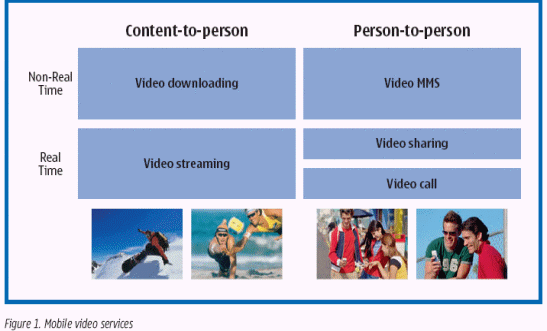 許多移動(dòng)運(yùn)營商已經(jīng)引領(lǐng)并推出移動(dòng)視頻服務(wù),它正因視頻流和實(shí)時(shí)P-to-P高質(zhì)量通話的增加,逐步發(fā)展出更多的商機(jī)。ARC組織估計(jì),在2004年里,全世界的移動(dòng)視頻用戶數(shù)量將增至2400萬,而到2008年,將是10倍的增長,達(dá)到2億4700萬。(摘自:ARC組織發(fā)表的《2003年-2008年,世界移動(dòng)視頻市場(chǎng)分析和戰(zhàn)略前景》)今天,大約有60個(gè)運(yùn)營商是依據(jù)發(fā)布新聞和其它公共信息資源來推廣移動(dòng)視頻服務(wù),圖1展示了移動(dòng)視頻服務(wù)的概念框架。