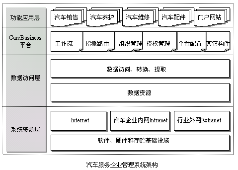 ·CareBusiness Suite的子系統(tǒng)之間有良好的接口,子系統(tǒng)之間可以方便的交換數(shù)據(jù),保持了數(shù)據(jù)的一致性。各個(gè)系統(tǒng)既可以獨(dú)立地運(yùn)行,也可以與其它子系統(tǒng)聯(lián)合使用,汽車企業(yè)可以根據(jù)自身的特征選擇相應(yīng)的子系統(tǒng)及其模塊,構(gòu)建滿足自身不同階段需要的、個(gè)性化的企業(yè)管理信息系統(tǒng)。