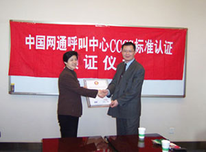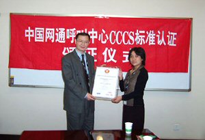 網(wǎng)通國際公司呼叫中心通過CCCS-2003標(biāo)準(zhǔn)認(rèn)證