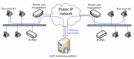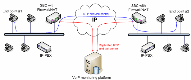VoIP應(yīng)用的質(zhì)量監(jiān)控分為主動式和被動式兩種實(shí)現(xiàn)方式。主動式的系統(tǒng)能產(chǎn)生呼叫,而被動式的系統(tǒng)只是監(jiān)測進(jìn)行中的呼叫。兩種方法各有優(yōu)勢。VoIP監(jiān)控方案的架構(gòu)取決于網(wǎng)絡(luò)Edge設(shè)備的類型和結(jié)構(gòu)。有些大型企業(yè)采用的VoIP網(wǎng)絡(luò)配備了一種特殊設(shè)備,叫SBC(Session boarder controller),除了完成類似路由器的功能外,還能完成流量分配、數(shù)據(jù)/語音信號加密以及業(yè)務(wù)質(zhì)量控制等功能。此外,通過過濾和替換數(shù)據(jù)包內(nèi)的、與用戶有關(guān)的特定信息,SBC還能隱藏公司的網(wǎng)絡(luò)拓?fù)浣Y(jié)構(gòu)和用戶信息,不被外部的IP世界所知道。