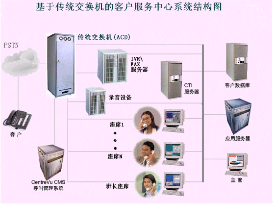 但是由于傳統(tǒng)交換機(jī)在語(yǔ)音資源、傳真資源等呼叫中心基本信息資源處理能力方面的匱乏,必須通過語(yǔ)音板卡和PC機(jī)的方式解決,有時(shí)因?yàn)橄到y(tǒng)容量大,甚至需要多臺(tái)共同服務(wù),其IVR(交互式語(yǔ)音應(yīng)答)和FAX、CTI服務(wù)器卻只能達(dá)到PC機(jī)標(biāo)準(zhǔn)。所以開發(fā)出的系統(tǒng)雖然前置交換為電信級(jí)的標(biāo)標(biāo)準(zhǔn),但是其整體性能、穩(wěn)定性仍受PC插卡方式的影響。另外,由于交換機(jī)和IVR、FAX、CTI等之間的相互連接會(huì)受其密合程度和其他外來(lái)因素影響,會(huì)造成一些不可預(yù)知的系統(tǒng)故障。不僅交換機(jī)+CTI服務(wù)器+IVR服務(wù)器(語(yǔ)音板卡+PC機(jī))+傳真服務(wù)器(傳真卡+PC機(jī))+錄音模塊設(shè)備(監(jiān)控錄音卡+PC機(jī))的建設(shè)成本非常高,并且編程開發(fā)較復(fù)雜。