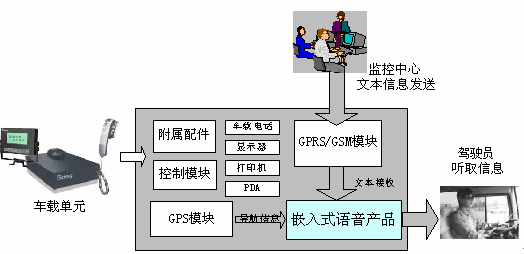 首先,當(dāng)車載GPS單元接收到由監(jiān)控中心發(fā)來(lái)的調(diào)度、提醒、叫車等信息時(shí),語(yǔ)音合成會(huì)伴隨顯示器上的顯示,同步將文字讀出,轉(zhuǎn)變?yōu)榍逦鲿车脑捯,這樣一方面司機(jī)不用特意在駕駛中注意顯示屏的文字內(nèi)容而同樣可以及時(shí)獲取信息的內(nèi)容,另一方面也減少了因?yàn)榉稚耨{駛而引發(fā)的交通安全隱患。