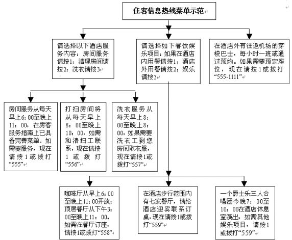 另一個(gè)提高服務(wù)質(zhì)量并可減少工作消耗的方式是讓住客直接從電話(huà)中獲取主要信息,特別是那些簡(jiǎn)單、重復(fù)、繁瑣的問(wèn)題,從而使服務(wù)人員有更多的時(shí)間從事其他工作。