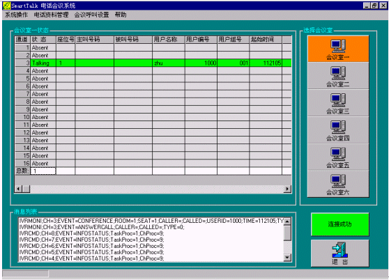 為了突破傳統(tǒng)電話會(huì)議系統(tǒng)的功能局限性,降低采用可視電話會(huì)議系統(tǒng)的高昻成本,本公司采用先進(jìn)的CTI技術(shù)和設(shè)備,推出了SmarTalk Conference電話會(huì)議系統(tǒng),具有超強(qiáng)的會(huì)議能力(同時(shí)可建立多個(gè)會(huì)議,每個(gè)會(huì)議最多同時(shí)可以設(shè)60個(gè)全功能會(huì)議座席,會(huì)議語(yǔ)音效果清晰流暢),并且利用計(jì)算機(jī)控制技術(shù)使操作變得簡(jiǎn)捷、方便,得到用戶(hù)一致的好評(píng)。同時(shí)用戶(hù)可以使用普通電話終端(包括固定電話和移動(dòng)電話)進(jìn)入會(huì)議,使用本系統(tǒng)的企業(yè)用戶(hù)不需要專(zhuān)用的中心會(huì)議室,參加會(huì)議的人員可以分布在任一地點(diǎn),極大地方便了會(huì)議的召開(kāi)。