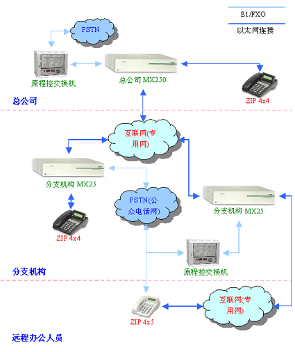 整個系統(tǒng)主要由Zultys MX250交換機、ZIP 4x4話機、ZIP 4x5話機構成。MX250交換機擁有傳統(tǒng)電話交換機(PBX/PABX)的全部功能,可以真正把消防通信的數(shù)據(jù)網(wǎng)絡和電話網(wǎng)絡融為一體,實現(xiàn)基于IP的語音通訊。