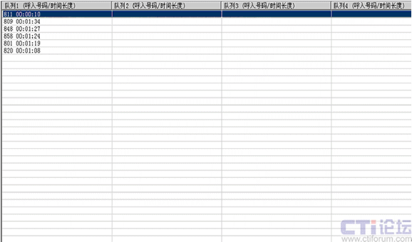 如圖4所示,管理員能得到隊(duì)列排隊(duì)的詳細(xì)信息如:來電號碼,等待時(shí)間。