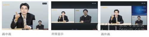 KDV1000支持畫中畫、畫外畫、對等雙顯、三畫面等各類視頻顯示方式,可同時觀看發(fā)言會場和本地會場,并可支持雙視頻流顯示。
