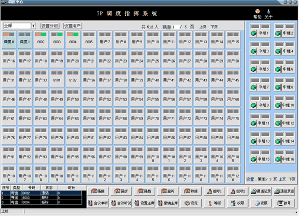 調(diào)度臺可顯示用戶、中繼的工作狀態(tài),所有狀態(tài)一目了然,調(diào)度員可方便的運用強插、強拆等功能
