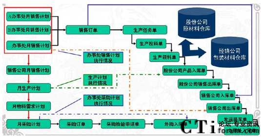 從上圖可以看出,河套酒業(yè)包括股份公司、生產(chǎn)公司、銷售公司、辦事處等獨立核算的實體或分子公司,但是實際上整個供應(yīng)鏈系統(tǒng)是完全集成在一起的。孤立的解決上述問題,只能帶來重復工作量、公司間相同業(yè)務(wù)不一致以及滯后、市場反應(yīng)不及時等問題。因此跨公司實體,實現(xiàn)銷售計劃、生產(chǎn)計劃、采購計劃三大計劃集成、物流集成是白酒類生產(chǎn)企業(yè)供應(yīng)鏈系統(tǒng)信息化的關(guān)鍵。