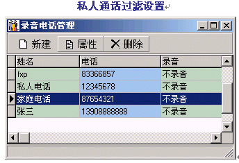 。。通過對某些特殊電話號碼的禁止錄音設置,DVS將自動過濾該號碼進行不錄音處理,以滿足私人通話及特殊場合的需要。