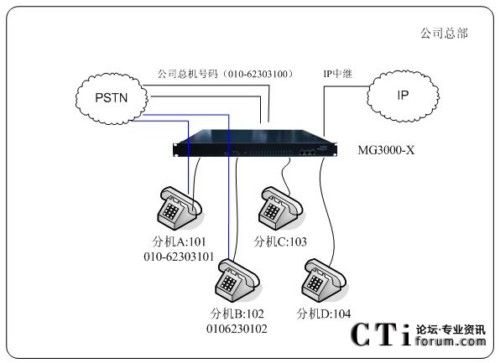 MG3000-X100替代傳統(tǒng)PBX交換機(jī)應(yīng)用方案 2009-09-23
