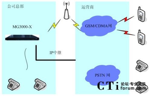 4、公司員工在公司外部時,可以用手機通過撥打公司“移動”總機,再通過IP中繼,撥打目的固定電話號碼或者移動電話號碼。即間接的把話務(wù)轉(zhuǎn)移到了IP中繼呼出上,在一定程度上節(jié)省了通話費用。