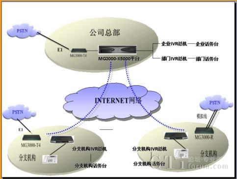 - 企業(yè)、部門和分支機(jī)構(gòu)可以采用MG3000-T4或Mg3000-R與PSTN互通。