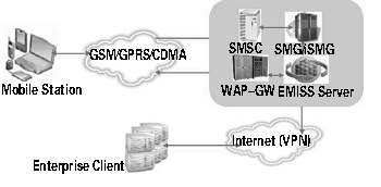 EMISS 移動信息服務系統(tǒng)是構建于企業(yè)平臺與移動運營商數(shù)據(jù)支撐平臺之間的增值業(yè)務服務系統(tǒng),在主體結(jié)構上劃分為EMISS Server 和Enterprise Client。