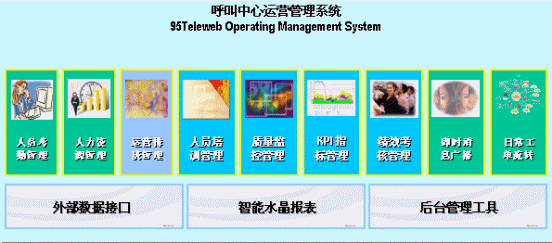 Teleweb-OMS運(yùn)營(yíng)管理系統(tǒng)共有11個(gè)模塊,涵蓋了動(dòng)態(tài)質(zhì)檢管理、培訓(xùn)管理、考勤管理、人力資源管理、話務(wù)預(yù)測(cè)與自動(dòng)排班、KPI管理、績(jī)效考核、部門間的需求單管理等各個(gè)環(huán)節(jié),并且提供了外部數(shù)據(jù)抽取功能和報(bào)表自動(dòng)生成功能。