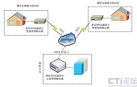 在保險(xiǎn)公司數(shù)據(jù)交換控制中心配置一臺具有VPN功能的中心寬帶網(wǎng)路由器,每條ADSL配置一個(gè)具有VPN功能的小型寬帶網(wǎng)路由器,并通過設(shè)置路由器即可成功建立起VPN網(wǎng)絡(luò)。這種網(wǎng)絡(luò)結(jié)構(gòu)不但有效的節(jié)約了成本,而且日后系統(tǒng)的擴(kuò)容的成本也非常的低,每增加一個(gè)點(diǎn)只需要申請一條ADSL就可以了。