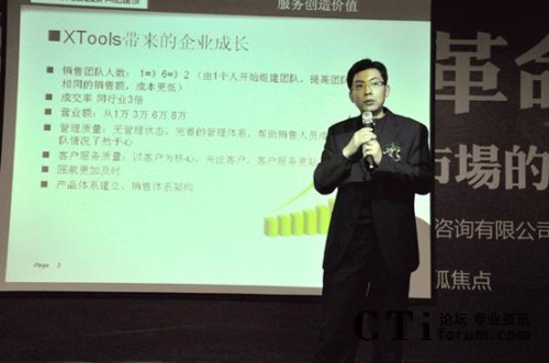 另外,濟(jì)南創(chuàng)弈工場(chǎng)總經(jīng)理趙小峰任曉峰與現(xiàn)場(chǎng)嘉賓分享了自身創(chuàng)業(yè)與成長(zhǎng)過(guò)程。創(chuàng)弈工場(chǎng)科技有限公司成立于2008年,是由山東大學(xué)創(chuàng)業(yè)團(tuán)隊(duì)發(fā)展而來(lái)的、以先進(jìn)電子商務(wù)架構(gòu)和企業(yè)CI設(shè)計(jì)專家為目標(biāo)的公司。趙總?cè)慰偸且晃?0后互聯(lián)網(wǎng)新銳,他表示:“公司運(yùn)用XTools具有管理思想的系統(tǒng)幫助管理這支年輕的隊(duì)伍,使其健康發(fā)展,對(duì)于創(chuàng)業(yè)者來(lái)說(shuō),銷售體系的管理是至關(guān)重要的,這樣我們少走了彎路!