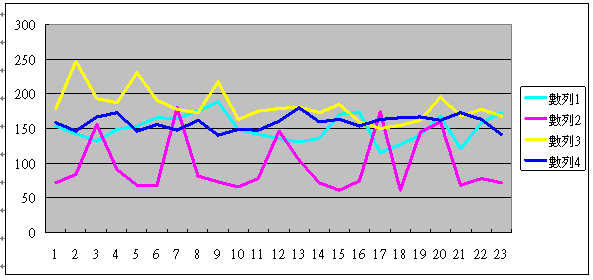 這里的四條線,分別代表了一個(gè)座席員的情況,黃色這條線代表的座席員在1號(hào)的時(shí)候,平均通話時(shí)長差不多是180秒,二號(hào)增加到250秒,之后慢慢減少到17號(hào)的150秒,以及23號(hào)的170秒。