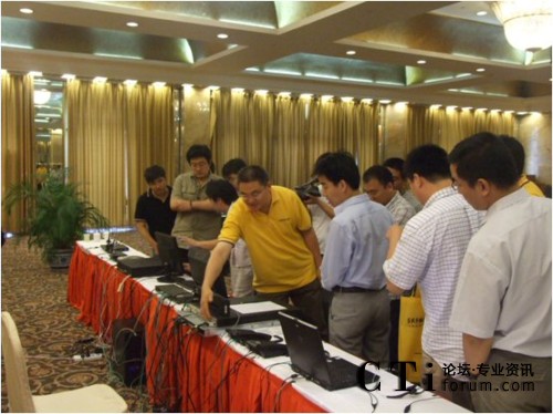 貫穿此次活動(dòng)的一大重頭——企業(yè)通訊現(xiàn)場演示。在本次活動(dòng)中,現(xiàn)場展示了企業(yè)會議系統(tǒng)、呼叫中心系統(tǒng),以及3G的體驗(yàn)平臺。演示是基于長沙朗深的UniMedia中間件進(jìn)行的,此中間件為多媒體交換機(jī)系列產(chǎn)品提供了融合、開放、靈活和高性能的多業(yè)務(wù)承載平臺。