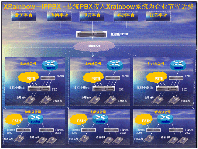 2.   托管的目的,一方面可不需要對(duì)北京公司總部現(xiàn)有網(wǎng)絡(luò)環(huán)境進(jìn)行升級(jí),另一方面可以滿足全國(guó)各分支機(jī)構(gòu)之間通話需求,更主要的是使電話會(huì)議的質(zhì)量得到更好的保障;