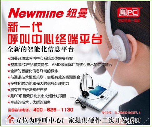 CTI論壇(ctiforum)4月28日消息(記者 張潔): 2011年4月12至13日,在五洲大酒店中國國際會議中心2011中國呼叫中心及企業(yè)通信大會(簡稱CTI呼叫中心大會)盛大召開,本屆展會展位近百個,規(guī)模2000余平方米,吸引了國內(nèi)外行業(yè)觀眾數(shù)千人次參與,并將成為2011年度國內(nèi)及亞太地區(qū)規(guī)模最大的呼叫中心和企業(yè)通信展會。紐曼騰飛公司在本屆展會上推出包括智能商務電話,錄音系統(tǒng),鳳PC(電話電腦一體機)等多種行業(yè)領先產(chǎn)品,吸引了大批行業(yè)內(nèi)人員及普通消費者的關(guān)注。尤其鳳PC的推出更是本屆展會的一大亮點。