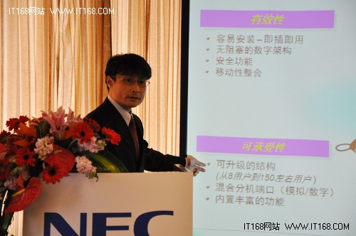 2011年3月28日,國際通信行業(yè)巨頭日本電氣株式會社(以下簡稱NEC公司)在北京舉辦新品發(fā)布會,宣布最新智能通訊服務(wù)器SL1000正式上市。發(fā)布會上,NEC公司IT網(wǎng)絡(luò)國際解決方案組平臺事業(yè)部副總裁橋沢太一郎先生闡述了對未來中國市場的市場策略和遠景目標(biāo)。