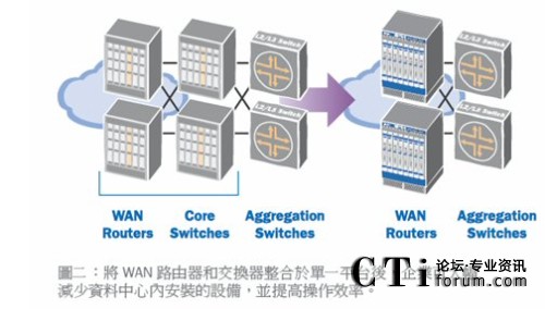 今天,許多WAN服務(wù)是由以太網(wǎng)設(shè)備提供的,因此必須在廣域網(wǎng)和局域網(wǎng)設(shè)備之間進(jìn)行介質(zhì)轉(zhuǎn)換,而新一代交換機(jī)則可省去這一步驟。許多新式交換平臺(tái)可提供穩(wěn)定的路由功能,并支持OC-12和其他廣域網(wǎng)接口,使得IT人員能夠?qū)V域網(wǎng)路由和局域網(wǎng)核心交換功能全部整合到下一代交換機(jī)平臺(tái)中。通過(guò)扁平化的網(wǎng)絡(luò)架構(gòu),企業(yè)可減少資本支出和操作費(fèi)用,同時(shí)還可降低網(wǎng)絡(luò)復(fù)雜度并提升正常運(yùn)營(yíng)的時(shí)長(zhǎng)。