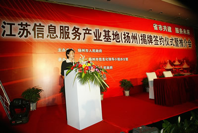 “腰纏十萬(wàn)貫,騎鶴下?lián)P州”——在“煙花三月”最美的季節(jié),在“長(zhǎng)江三角洲經(jīng)濟(jì)帶”最具活力的地區(qū),在榮獲“聯(lián)合國(guó)人居獎(jiǎng)”的揚(yáng)州,4月21、22日“江蘇信息服務(wù)產(chǎn)業(yè)基地(揚(yáng)州)揭牌簽約推介暨揚(yáng)州呼叫產(chǎn)業(yè)基地建設(shè)運(yùn)營(yíng)管理論壇”隆重舉行,揚(yáng)州市市長(zhǎng)、江蘇省信息產(chǎn)業(yè)廳廳長(zhǎng)、揚(yáng)州人大等四套班子以及來(lái)自北京、上海及江蘇省內(nèi)的各信息產(chǎn)業(yè)的相關(guān)企業(yè)高管及業(yè)內(nèi)知名專(zhuān)家,帶著投資,帶著知識(shí),帶著對(duì)信息揚(yáng)州規(guī)劃的建議,齊聚揚(yáng)州,共商大計(jì)。