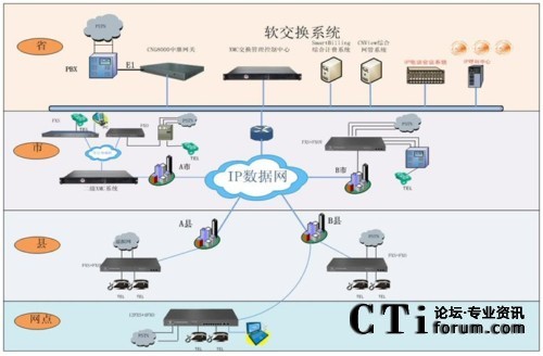 IP電話系統(tǒng)項(xiàng)目方案設(shè)計(jì)共分省、地州市、縣(市)三級(jí)進(jìn)行部署,按照省集團(tuán)至地州市分集團(tuán)、縣(市)級(jí)分集團(tuán)及營(yíng)業(yè)廳建設(shè),全網(wǎng)通過(guò)部署相應(yīng)的IP電話設(shè)備(含語(yǔ)音軟交換、接入網(wǎng)關(guān)、PC軟電話、網(wǎng)管軟件、計(jì)費(fèi)軟件等),組建全省IP電話系統(tǒng)。