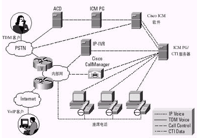 通過一個容納了ACD、IVR、Web和電子郵件服務器、桌面應用以及其他內容的計劃,Cisco ICM軟件使公司能夠利用Internet或PSTN實現(xiàn)與客戶的交互。