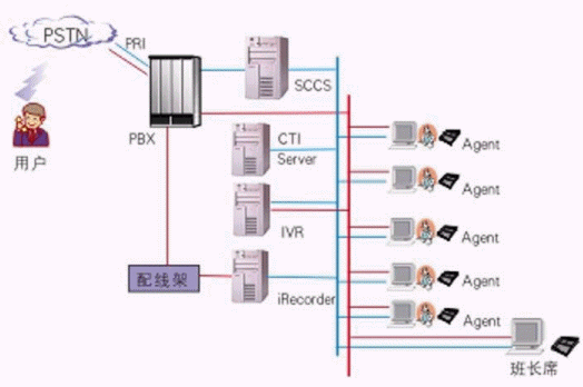 其中交換機(jī)采用Meridian,軟件平臺(tái)采用浩豐時(shí)代的系列解決方案:自動(dòng)語音應(yīng)答系統(tǒng)IVR2000®,CTI平臺(tái)VOM®,坐席應(yīng)用系統(tǒng)iAgent®和數(shù)字錄音監(jiān)聽系統(tǒng)iRecorder?。該系統(tǒng)既可以利用強(qiáng)大的呼入排隊(duì)功能處理客戶請求,也可以利用呼出功能為客戶提供主動(dòng)服務(wù)。