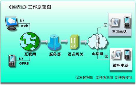 具體來講就是在手機里安裝“暢話寶”應用軟件(在計算機桌面提供web客戶端),該軟件帶有通信錄和觸發(fā)GPRS的功能,可以通過無線互聯(lián)網(wǎng)將電話號碼發(fā)送到平臺,通過PSTN發(fā)起通話(2方或多方)。這個手機客戶端軟件,可無縫對接到固網(wǎng)增值業(yè)務平臺上(多方通信平臺)?蛻舳塑浖陨頂y帶有通信錄功能,調(diào)用方便。部分機型可調(diào)用手機本身的通信錄。