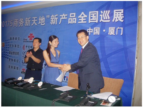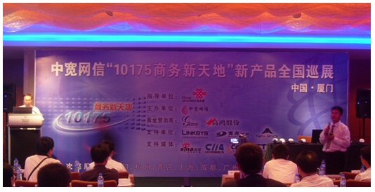 2007年6月27日,中寬網(wǎng)信”101756商務(wù)新天地”新產(chǎn)品全國(guó)巡展廈門(mén)站在廈門(mén)喜來(lái)登酒店勝利召開(kāi)。會(huì)議的主旨是向中小企業(yè)及呼叫中心用戶推出個(gè)性化的通信增值服務(wù)方案,提高企業(yè)競(jìng)爭(zhēng)力;同時(shí)為投資者提供投資小回報(bào)快的投資項(xiàng)目。此次會(huì)議得到了中國(guó)聯(lián)通的大力支持,廈門(mén)聯(lián)通數(shù)據(jù)部副總監(jiān)林長(zhǎng)春先生表示中國(guó)聯(lián)通十分看好中國(guó)電信融合市場(chǎng)的巨大產(chǎn)業(yè)機(jī)會(huì),有信心與中寬網(wǎng)信真誠(chéng)合作,利用雙方各自平臺(tái)優(yōu)勢(shì),深度合作,資源互補(bǔ),共同參與激烈的電信市場(chǎng)競(jìng)爭(zhēng)。