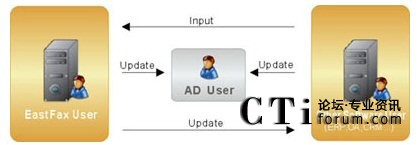 方式二:EastFax支持標(biāo)準(zhǔn)的LDAP(Light Directory Access Protocol ,輕量級(jí)目錄訪問(wèn)協(xié)議),因此可以方便地與其他任何支持LDAP的信息系統(tǒng)(如Active Directory、Lotus Domino)進(jìn)行用戶(hù)信息的實(shí)時(shí)同步,實(shí)現(xiàn)了企業(yè)對(duì)用戶(hù)的統(tǒng)一管理。