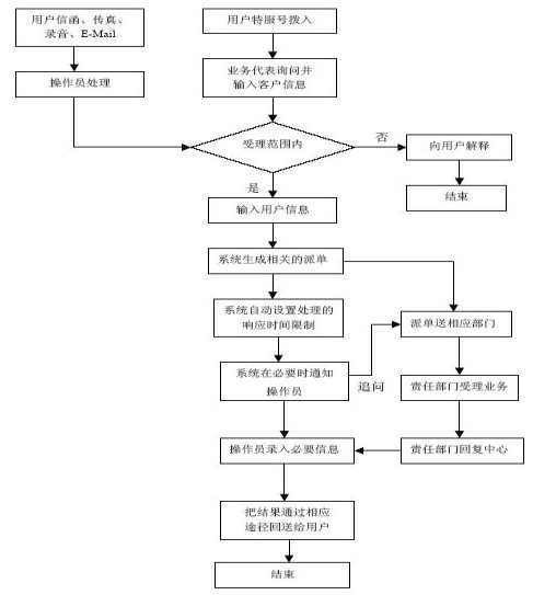 處理-> 審查-> 答復-> 結束。在集成工作流環(huán)境中,座席、班長座席可以受理客戶來電,生成客戶來電受理單等待下一步處理。