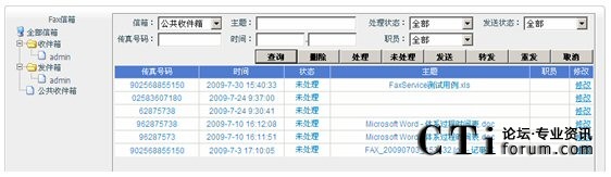 打開(kāi)瀏覽器,輸入WebFax管理網(wǎng)站的地址,登陸,然后通過(guò)這個(gè)網(wǎng)站,查看收發(fā)傳真的狀態(tài),及接收傳真的圖像?梢赃M(jìn)行查詢(xún)、下載、發(fā)送、轉(zhuǎn)發(fā)、重發(fā)和刪除傳真。