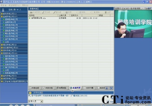 CTI論壇(ctiforum)12月03日消息(記者 張塵):11月26日下午,江蘇省電力公司勞資部門通過網(wǎng)絡(luò)遠(yuǎn)程方式對(duì)下屬公司員工進(jìn)行培訓(xùn),這也是該部門第一次采用網(wǎng)絡(luò)培訓(xùn),泰州、徐州、連云港等市、縣人員遠(yuǎn)程參加了培訓(xùn)。會(huì)議主持人說:“今天首次嘗試使用網(wǎng)絡(luò)遠(yuǎn)程培訓(xùn)方式,感覺效果不錯(cuò),以后的統(tǒng)計(jì)、人事、勞動(dòng)組織等工作將更多的采用這種網(wǎng)絡(luò)培訓(xùn),希望參會(huì)人員能逐漸適應(yīng)網(wǎng)絡(luò)培訓(xùn)方式!迸嘤(xùn)結(jié)束后,南通市啟東縣的工作人員說:“以后的培訓(xùn)建議都采用網(wǎng)絡(luò)方式,不然在路上來回時(shí)間太長”。