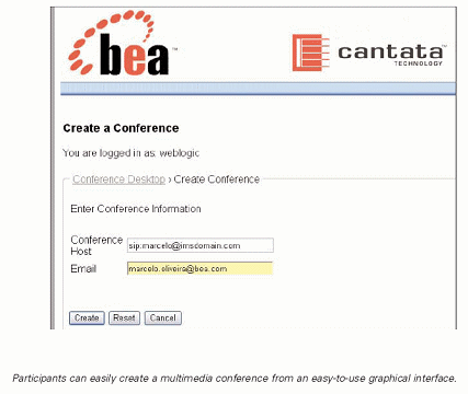 在上述應(yīng)用中,一用戶建立了一個多媒體會議會話。該會議的進(jìn)行一如我們平常所熟悉的基于運(yùn)營商的語音會議系統(tǒng)的商務(wù)會議。不同的是,它使用了基于Web的圖形交互, 使得用戶可以建立會議時間以及受邀請的參與人的列表,此外, 該應(yīng)用還發(fā)出了一封含有該會議相關(guān)的聯(lián)絡(luò)信息的電子郵件。并且,它還充分利用了Cantata SnowShore 媒體服務(wù)器的高級多媒體功能為會議參與人提供豐富的多媒體體驗(yàn)。