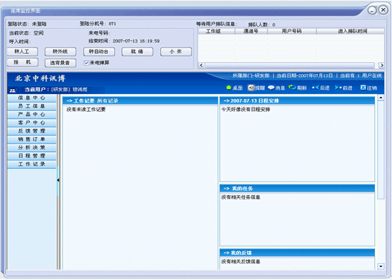 多種排隊(duì)機(jī)制,所有來電排隊(duì)信息都有顯示,提供對(duì)來電上移、下移、移到最前或轉(zhuǎn)自動(dòng)臺(tái)處理等多種可選擇的排隊(duì)功能,來電可根據(jù)服務(wù)要求,選擇不同的服務(wù)部門及人員,系統(tǒng)都做了優(yōu)化處理