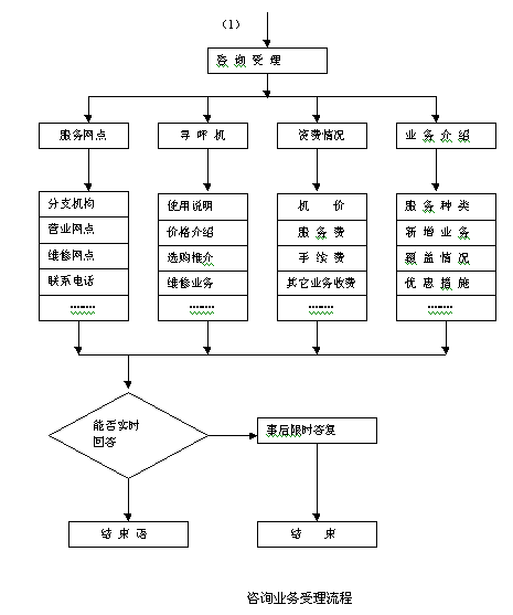 咨詢(xún)主要是回答客戶(hù)有關(guān)臺(tái)席各項(xiàng)業(yè)務(wù)種類(lèi)、資費(fèi)標(biāo)準(zhǔn)、服務(wù)網(wǎng)點(diǎn)及優(yōu)惠措施等問(wèn)題,要求以自編數(shù)據(jù)庫(kù)或業(yè)務(wù)手冊(cè)為基礎(chǔ),實(shí)時(shí)予以回答。一時(shí)無(wú)法解釋清楚的,建議客戶(hù)留下聯(lián)系電話(huà),將由專(zhuān)人負(fù)責(zé)答復(fù)。