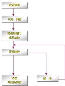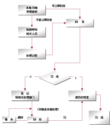 整個(gè)網(wǎng)絡(luò)采用只在集中受理中心設(shè)立一個(gè)集中監(jiān)控系統(tǒng),負(fù)責(zé)監(jiān)控全網(wǎng)的客戶業(yè)務(wù)、服務(wù)、技術(shù)支持和投訴等等業(yè)務(wù),該系統(tǒng)基于事件管理的思想,提供包括創(chuàng)建、解決、分配、反饋、跟蹤、回訪等節(jié)點(diǎn)在內(nèi)的閉環(huán)處理模式。例如系統(tǒng)可以根據(jù)客戶反映問(wèn)題的時(shí)間以及緊急程度,按照系統(tǒng)約定的處理時(shí)限對(duì)處理過(guò)程實(shí)時(shí)跟蹤和記錄,當(dāng)處理超時(shí)時(shí)回自動(dòng)給出報(bào)警信息,提示相關(guān)的操作人員及主管人員。同時(shí)根據(jù)約定還可以將受理的問(wèn)題按照約定的方式自動(dòng)發(fā)送到相關(guān)的處理部門,由處理部門進(jìn)行處理。
