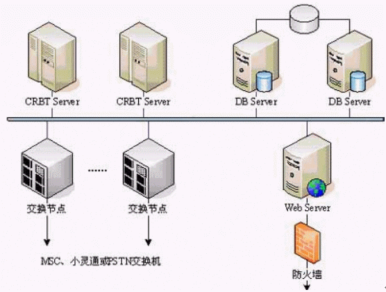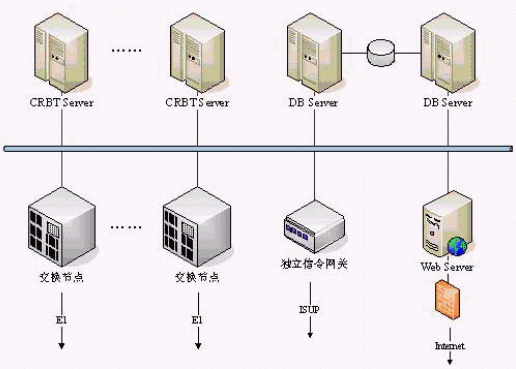 1、系統(tǒng)中的多臺CRBT Server主機采用高性能的UNIX服務器,負荷分擔的運行方式,多機間協(xié)同工作,互為備份。