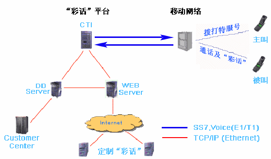 IVR:提供各種"彩話"、 用戶通過撥打IVR定制"彩話"、 通話過程中,用戶可進(jìn)入IVR點播"彩話"