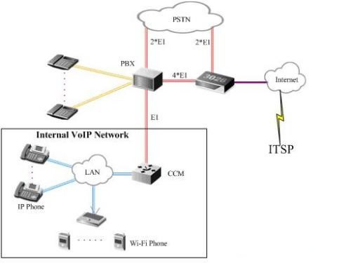 iBG3026,最后在PBX和Ubigate iBG3026之間再開通4條E1中繼,同時(shí),Ubigate iBG3026通過自帶的GE接口接入酒店的辦公局域網(wǎng),這樣即使出現(xiàn)客房人員使用網(wǎng)絡(luò)不規(guī)范的情況發(fā)生,也不會(huì)影響語(yǔ)音服務(wù)的質(zhì)量。