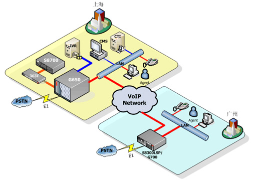 為了進(jìn)一步拓展中國市場,并且針對某些特定的地方需要提供本地化方言服務(wù),S公司需要在廣州設(shè)立一個新的座席集群,座席數(shù)量在50左右,需要擁有與中心點(diǎn)一樣完善的功能,實(shí)現(xiàn)呼叫的自由分配,共享中心點(diǎn)設(shè)施,比如CMS(呼叫中心報表系統(tǒng))、IVR(交互式語音應(yīng)答系統(tǒng))和CDR(呼叫詳細(xì)記錄)等等。并提供最強(qiáng)的穩(wěn)定性和冗余備份功能。